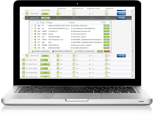 03Efektywne planowanie tras powinno być poparte ich wykonaniem. route.plus oferuje narzędzie kontroli poziomu realizacji planów pracy, a także pozwoli sprawdzić pozycje GPS podczas wizyt.Zobacz więcej