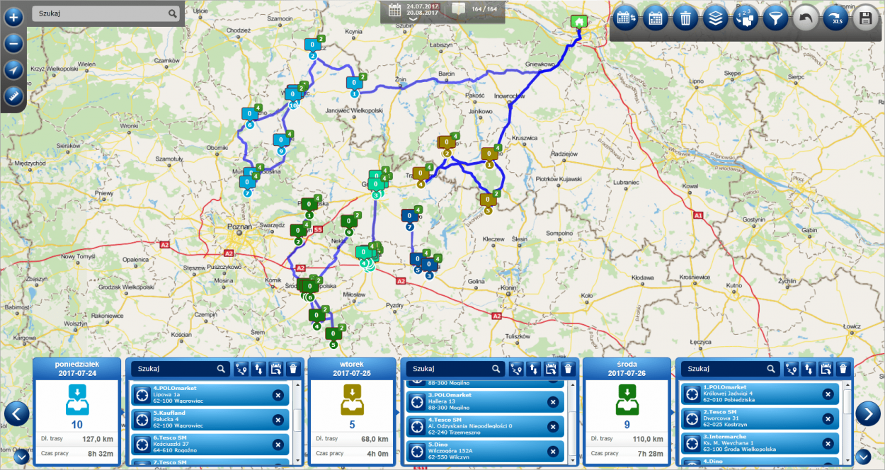Jeśli zdecydujesz się wprowadzić zmiany do tras, moduł modyfikacji pozwala na szybkie i łatwe operowanie planem pracy m.in.: